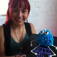 To celebrate, we got her a strange cake! Then, she stabbed it. -