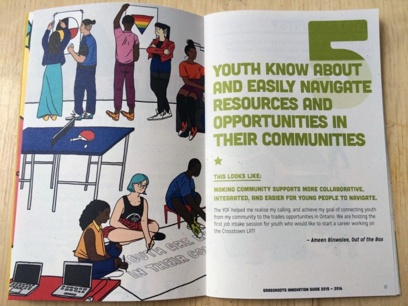 To make the YOF as accessible as possible, The Public worked with ArtReach to develop a video and booklet on the Grassroots Innovation Stream of the YOF for youth and youth outreach workers that guides applicants through the application process while affirming the value and possibilities of the work young people facing multiple barriers in Ontario.
