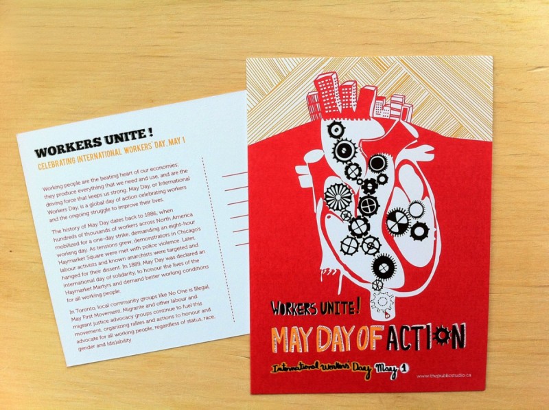 Happy May Day! We’re off to the potluck and seed planting at Queen’s Park and then the rally and march. If you see any of us, ask us for a postcard! They’re for you to share with friends and allies.