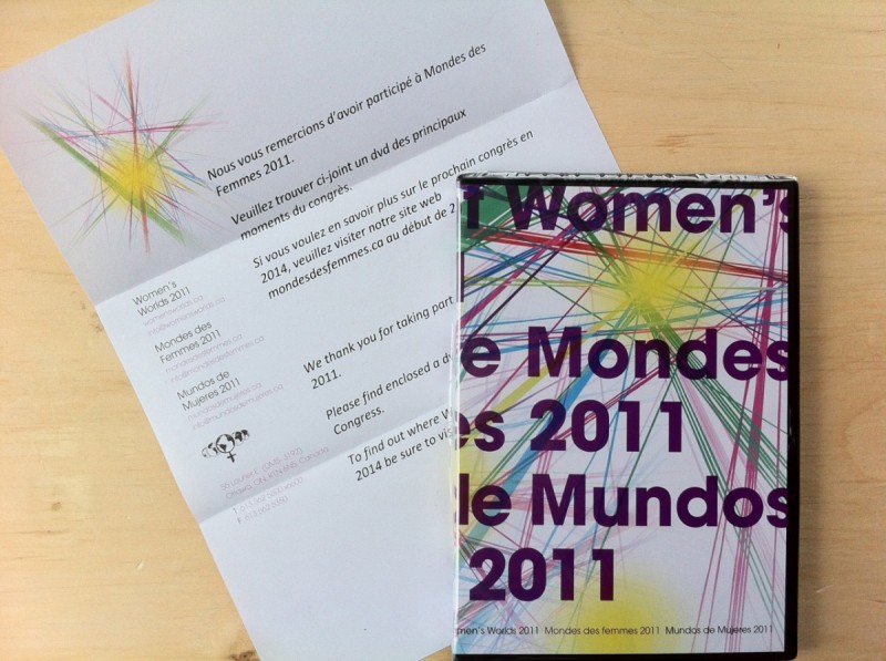 Just arrived in the mail is the Women’s Worlds 2011 DVD. It’s gotta be hard to sum of four days of intense feminist discourse, but we’re looking forward to seeing the re-cap!