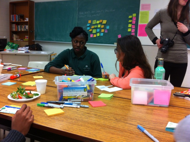 On Monday, Sheila visited Westview Centennial School up at Jane and Finch to co-facilitate the first of a series of eight workshops on air quality/pollution and creative knowledge transfer, with the fine folks at Green Change, a part of the Jane/Finch Community and Family Centre, and Success Beyond Limits. The first workshop included icebreakers, and creative activities designed to get participants talking about how air pollution affects the community, as well as visioning what a healthy community looks like. The youth offered amazing intersectional analyses of the issues in the area, as we talked about the the reality of environmental racism, autonomy, and community-building. Next workshop is this Thursday, and we can’t wait to continue working with and learning from this amazing group!
