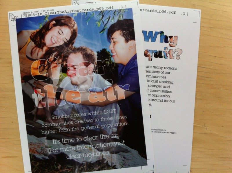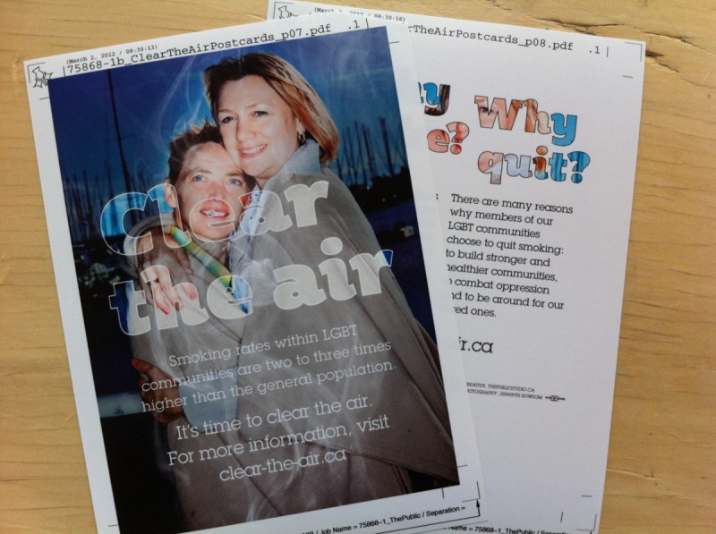 We’re just signing off on some proofs from our printer today, and are looking forward to the official campaign launch at the beginning of April. In the meantime, be sure to visit clear-the-air.ca, start adding your tips to quit and success stories, and use that Facebook app to spread the word to your friends!