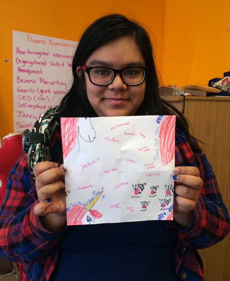 The workshop was part of ReShaped & ReImagined, a fashion entrepreneurship program for newcomer/racialized girls, which offered practical skills training in other forms of creative expression such as screenprinting, sewing, and blogging.