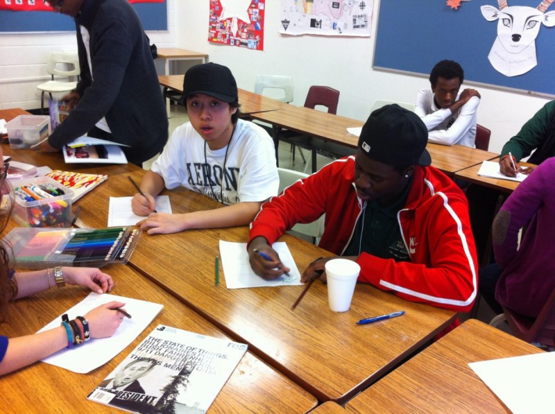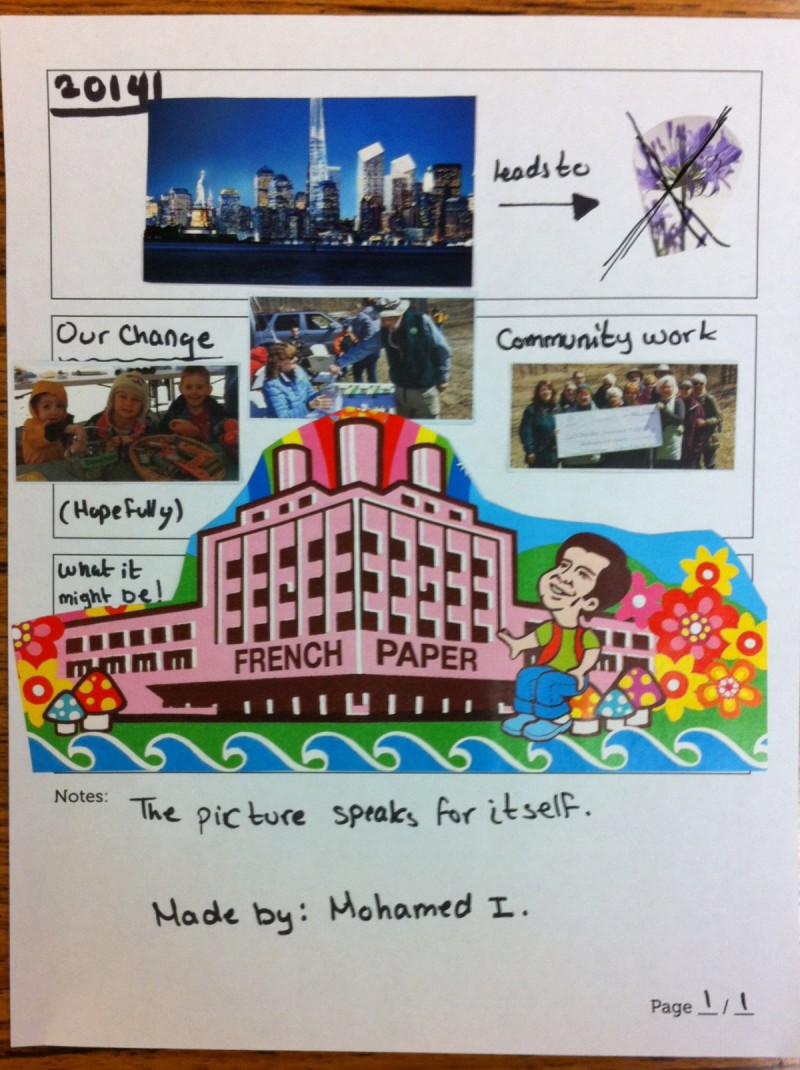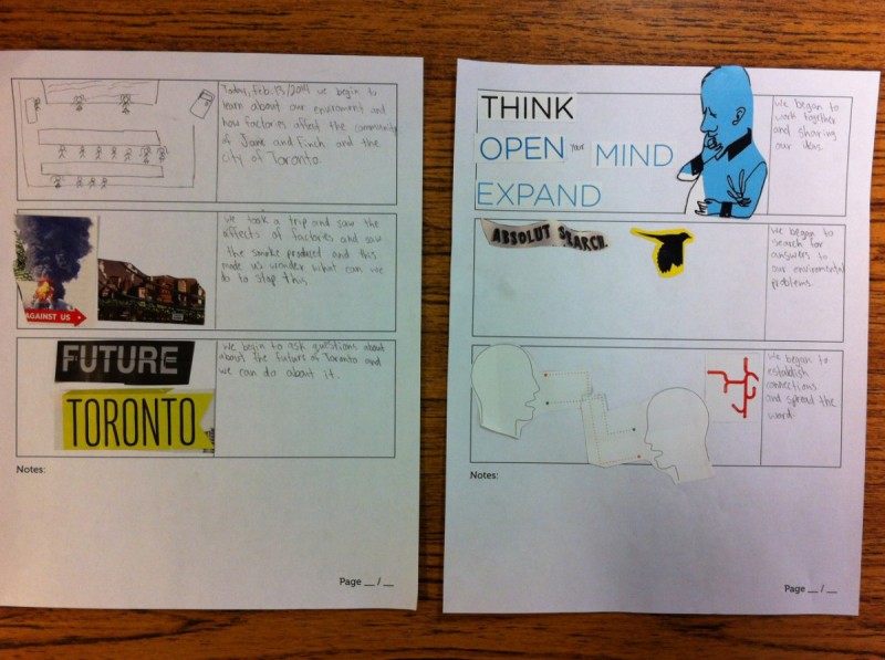 Sheila took another trip to Jane and Finch yesterday, working with an amazing group of youth on issues around air pollution. We went over the history of reporting bylaws and the development of the ChemTRAC program, and found ways through illustration and collage, of writing the rest of the story ourselves. Next week, we’re going on a walking tour of the neighbourhood, to see what businesses are reporting chemicals in the area. Can’t wait!