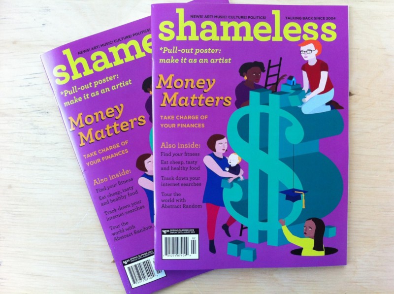 Sheila’s out-of-office project, Shameless, just arrived at the office! It’s the spring/summer money issue, just in time for this weekend’s clothing swap!