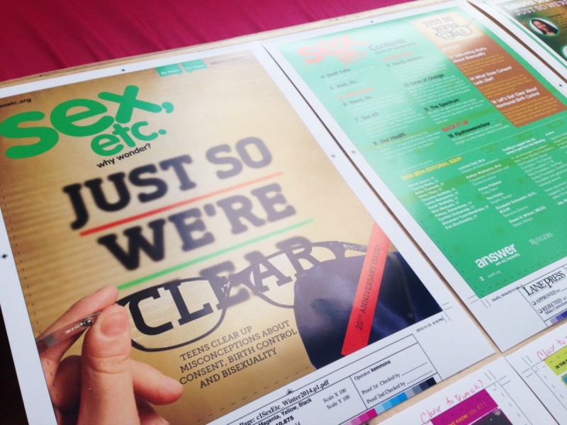 Sneak peek: On the press! The new issue of Sex, Etc. is on its way! This issue, “Just so we’re clear,” well, clears up misconceptions about bisexuality, consent and birth control. We can’t wait to get our hands on copies of this one!