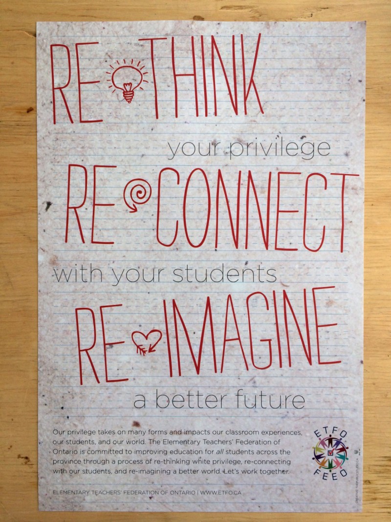 The ETFO passed a resolution at the last annual meeting to initiate workshops and materials introducing the concept of white privilege to its members. The motion was initiated by the Black/ally caucus and was in response to the Danzig shooting and an acknowledgement that membership is not representative of the broader student population and could be working harder to bridge gaps.