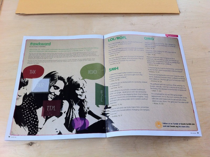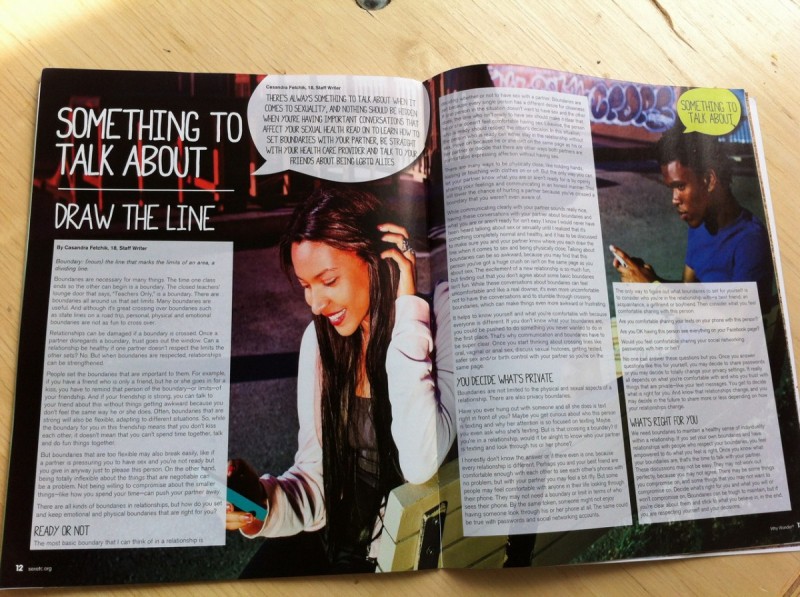 The new issue of Sex, Etc. is in! The new issue “We have something to talk about” explores how teens relate to one another as they talk about relationships, boundaries, sexual health, and being an ally to LGBTQ peers. We are super excited for this issue as it is our first one with the new editorial team for 2012-2013. Great Job everyone!