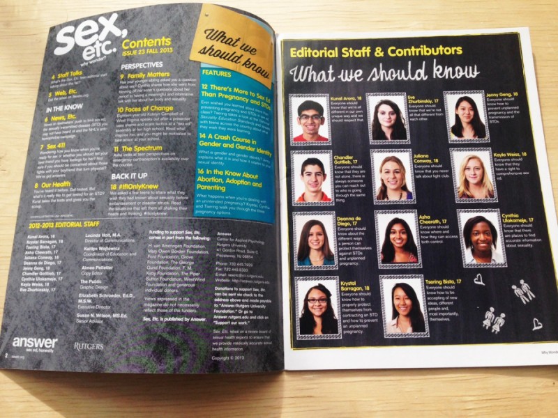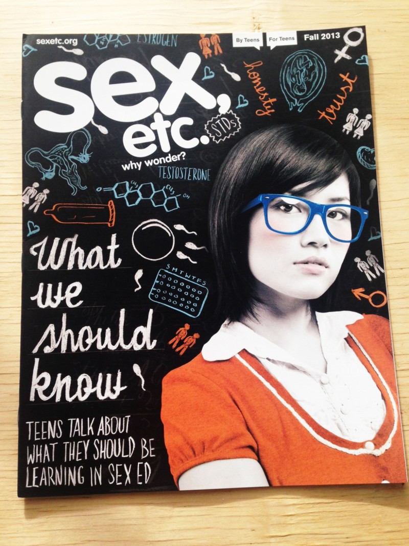 These took a while to arrive all the way from New Jersey, but we’re so excited to have, in our hands, the Fall 2013 issue of Sex, Etc. Check it out, for “What we should know…”