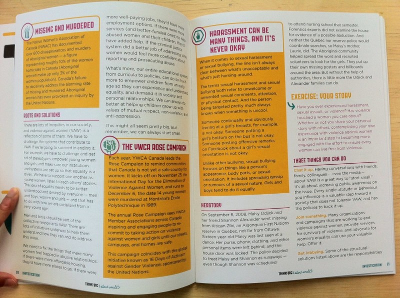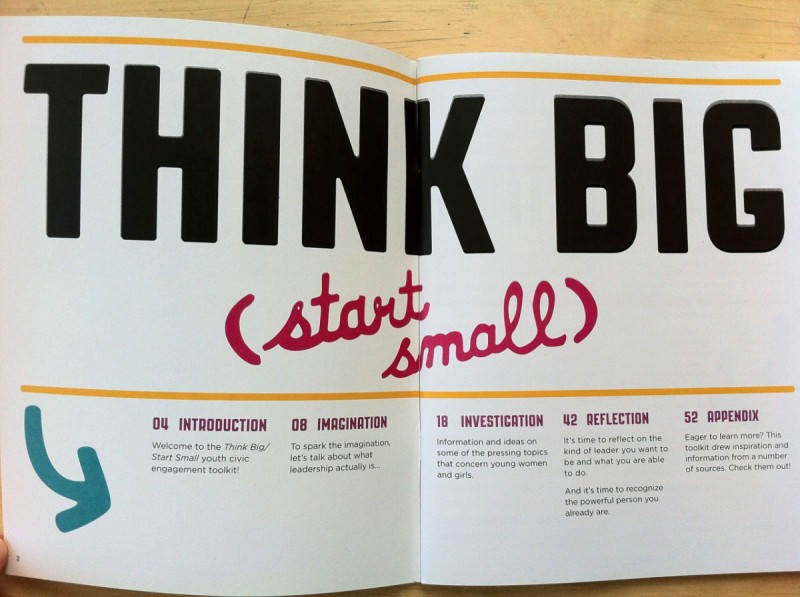 We launched a campaign today! Think Big/Start Small is a civic engagement campaign we spearheaded for YWCA Canada for young women 16-29, addressing issues around sexual and reproductive health, violence against women, economic equality, Indigenous solidarity, race and racism and environmental justice. If you are a young woman, or work with young women, I encourage you to join the site, download the toolkit, and organize an action for the Day of Big Change, happening March 1st, 2013 (one week before International Women’s Day).