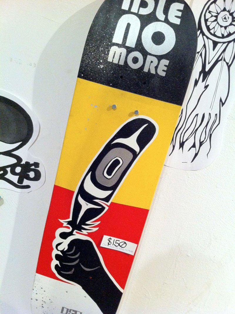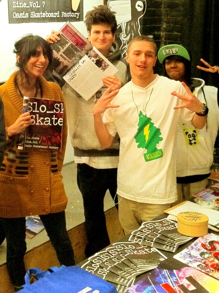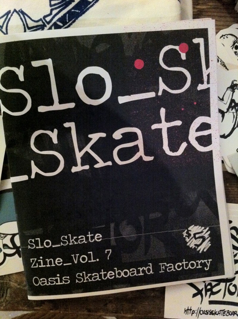 This past Friday, Sheila joined the crew at Oasis Skateboard Factory for the opening of their pop-up shop/show at the Baitshop. In addition to celebrating a year’s worth of work (custom skateboards, recycled everything, t-shirts, fingerboards), she was also thrilled to be there for the delivery of the new issue of Concrete Wave magazine, which features a sixteen-page insert by OSF.